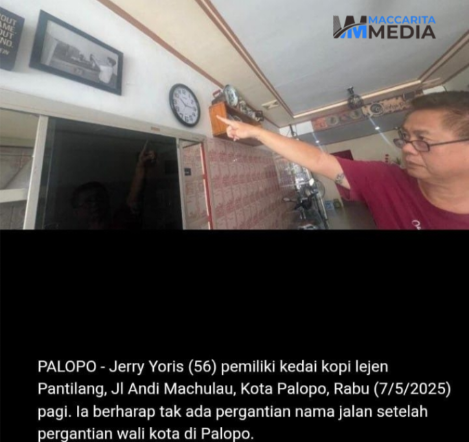 “Jangan mi lagi ganti-ganti nama jalan. Susah kita belah. Ganti papan alamat, ganti dokumen dan sertifikat tanah,” ujar Jerry Yoris (56), di kedai kopi lejen Pantilang, Jl Andi Machulau, Kota Palopo, Rabu (7/5/2025) pagi.