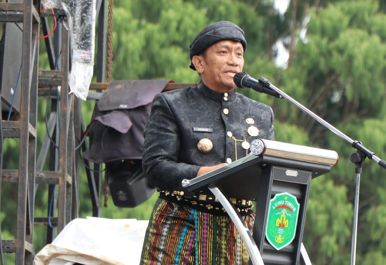 Dalam sambutannya, Bupati Luwu Timur, H. Irwan Bachri Syam, mengungkapkan makna mendalam dari tema peringatan tahun ini: “Dari Bumi Batara Guru, Kita Menulis Masa Depan.”