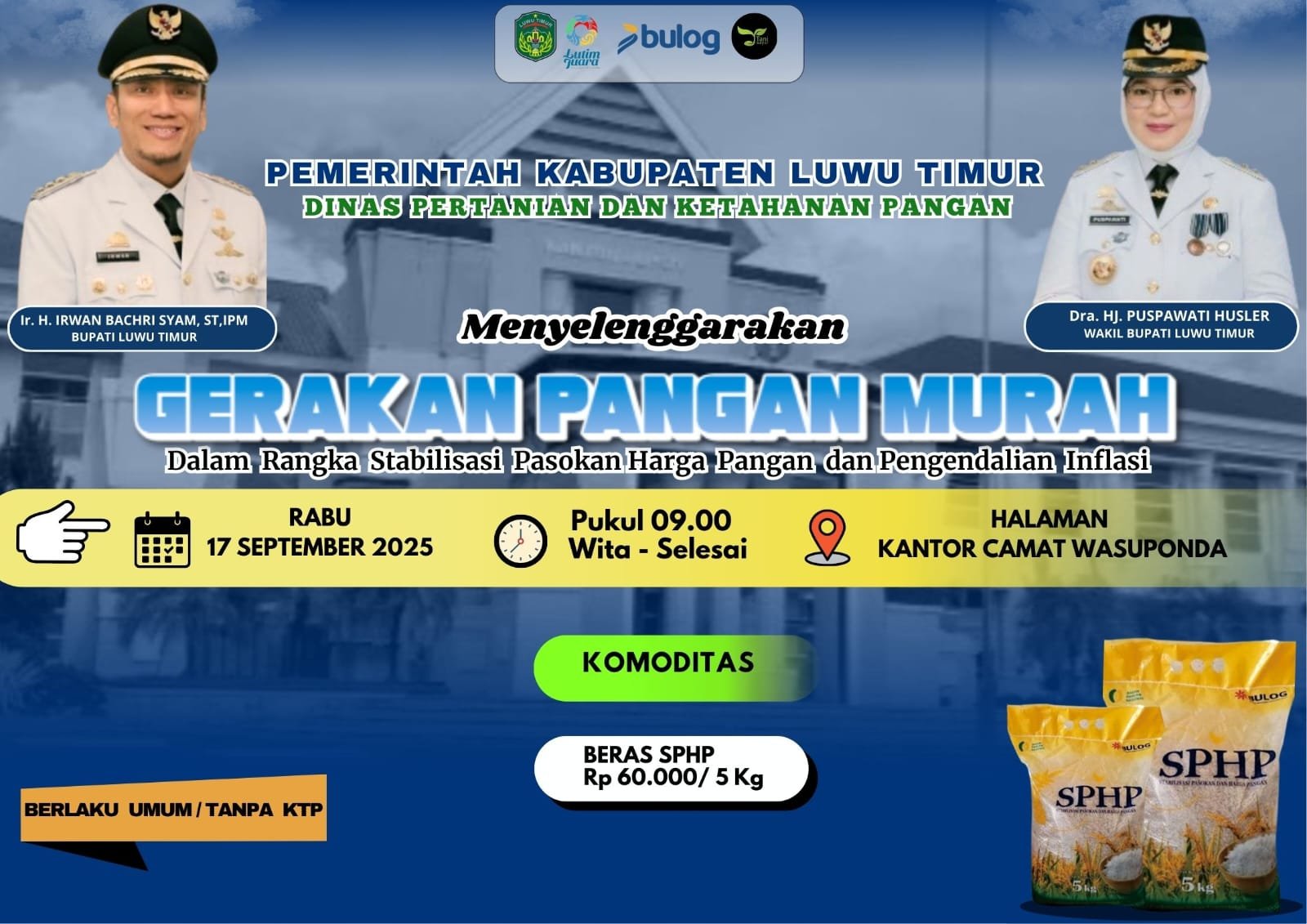 LUWU TIMUR – Pemerintah Kabupaten Luwu Timur melalui Dinas Pertanian dan Ketahanan Pangan akan menggelar Gerakan Pangan Murah sebagai langkah stabilisasi pasokan harga pangan dan pengendalian inflasi.