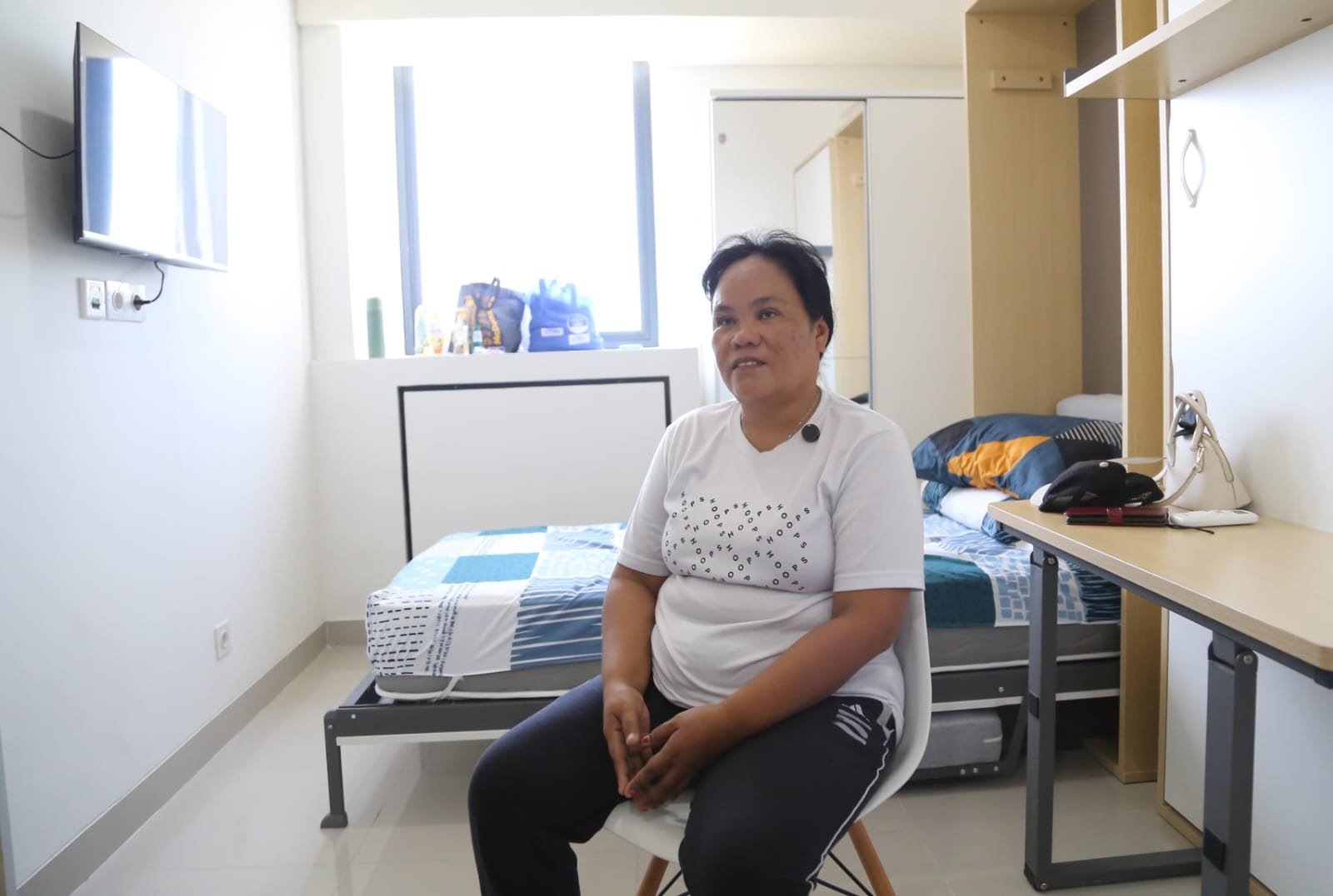 “Di sini kami langsung direspons dengan baik dan diperbolehkan tinggal. Kami sudah tinggal sejak hari Sabtu sampai sekarang, dengan fasilitas lengkap seperti kamar mandi, kulkas, pemanas nasi dan air, tempat tidur, TV, hingga lemari pakaian. Semua gratis,” tambah Jumati.