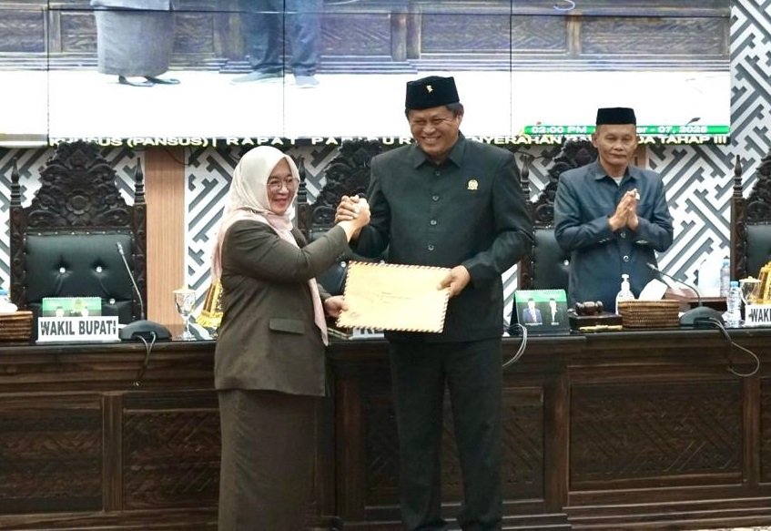 LUWU TIMUR – Wakil Bupati Luwu Timur, Hj. Puspawati Husler menyerahkan empat (4) Rancangan Peraturan Daerah (Ranperda) kepada Dewan Perwakilan Rakyat Daerah (DPRD) Luwu Timur, dalam Rapat Paripurna yang digelar Selasa (07/10/2025).